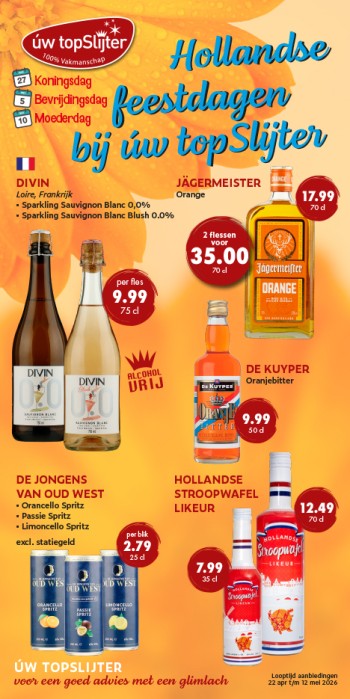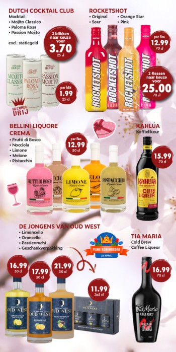 zondagmiddag 26 april is de slijterij open i.v.m. wijnproefmiddag. Houd hiervoor Social Media in de gaten.